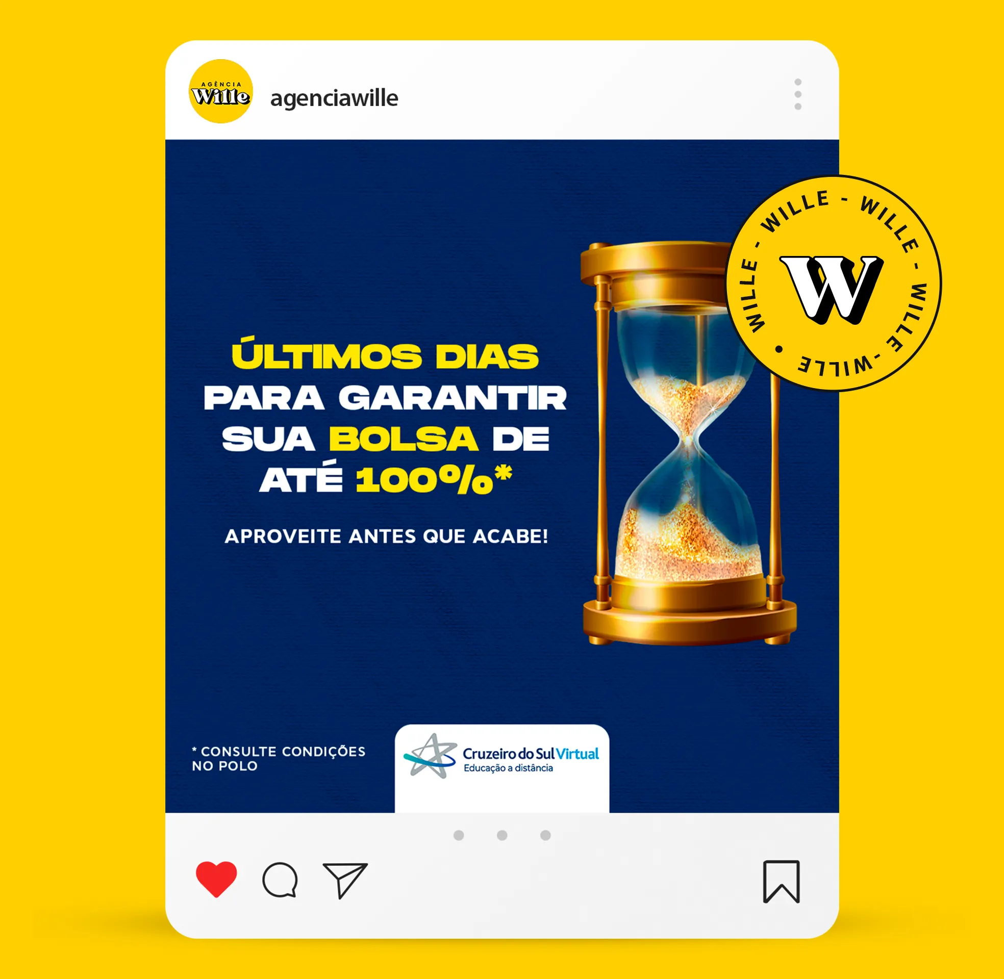 A Agência Wille é especialista em marketing digital de performance, unindo criatividade e estratégia para acelerar o crescimento de marcas. Combinamos design impactante, campanhas inteligentes e tecnologia de ponta para gerar mais leads, conversões e resultados reais para o seu negócio.